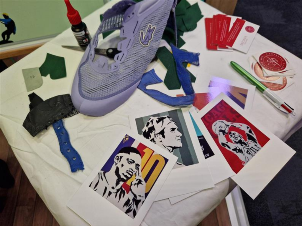 Durant le deuxième jour de salon, l’artiste Constantin Vincent a réalisé des démonstrations artistiques en collaboration avec nos clients et partenaires. Cet artiste mêle culture de la sneakers avec l’art contemporain. Il créé ses tableaux à partir de baskets usées pour représenter des grands noms du sport.